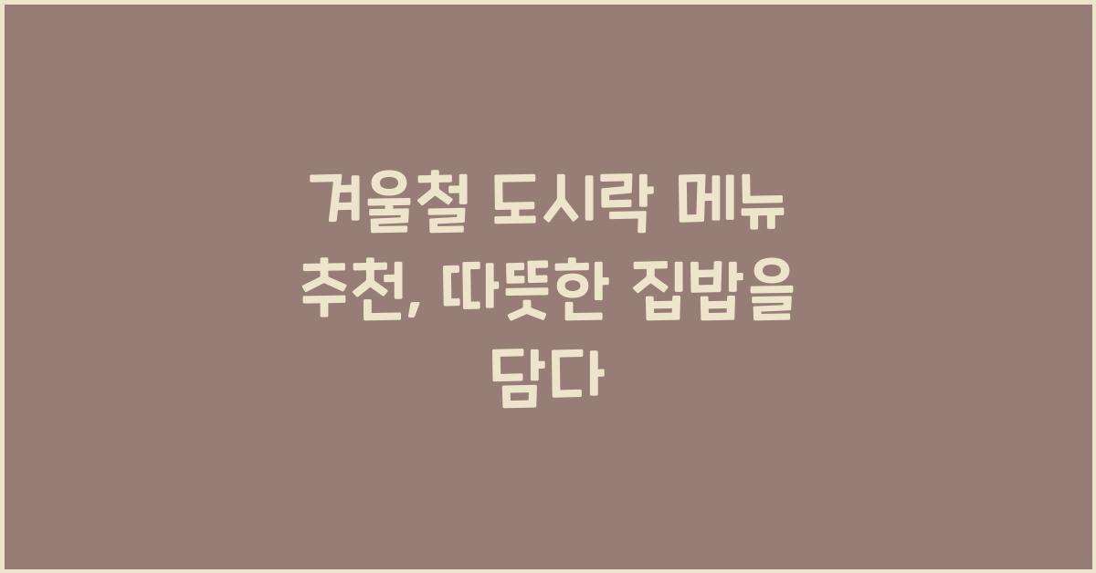 겨울철 도시락 메뉴 추천, 따뜻한 집밥을 담다