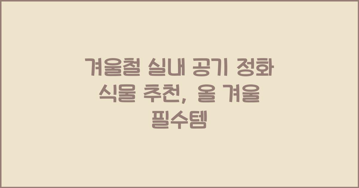 겨울이 다가오면서 수많은 사람들이 따뜻한 실내에서 시간을 보낼 준비를 하고 있습니다. 하지만 겨울철에는 난방기로 인해 실내 공기가 매우 건조해지고, 잘 관리하지 않으면 유해물질이 가득할 수 있습니다. 그래서 오늘은 **겨울철 실내 공기 정화 식물 추천**을 통해 건강한 겨울을 보내는 방법을 알아보겠습니다. 식물들은 공기 중의 독소를 제거하고, 습도를 조절하여 쾌적한 환경을 만들어 주는데 큰 역할을 합니다. 여러분도 이 글을 통해 화사한 겨울을 맞이해 보세요!겨울철 실내 공기 정화 식물 추천 더 알아보기겨울철 실내 공기 정화 식물 추천, 어떤 식물들이 있을까?우선 첫 번째로 추천하는 식물은 바로 산세베리아입니다. 이 식물은 강한 생명력을 가지고 있어 키우기 쉽고, 간단한 관리로도 잘 자라는 특징이 있습니다..