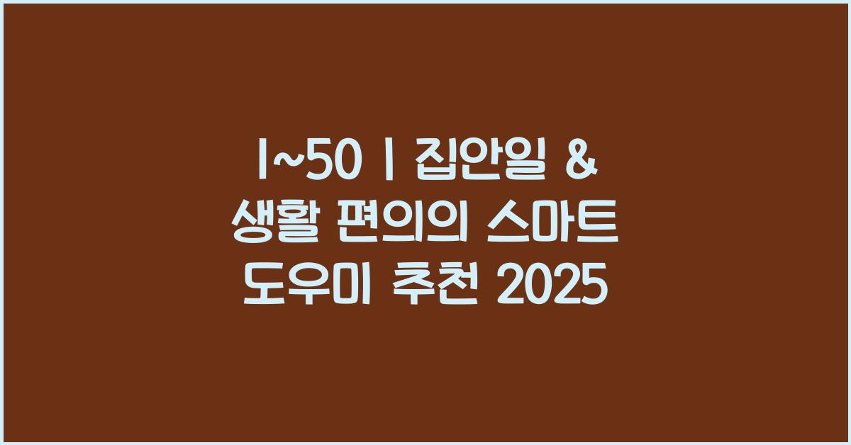 2025년에는 스마트 도우미가 우리의 생활을 더욱 편리하고 쾌적하게 만들어 줄 것입니다. 일상생활에서의 작은 불편함은 이 스마트 기기들을 통해 확연히 줄일 수 있습니다. 1~50 | 집안일 & 생활 편의의 스마트 도우미를 활용하여, 더욱 효율적으로 집안일을 해결하고 가족과의 소중한 시간을 만들어 보세요.